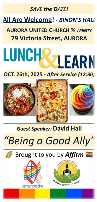 Please speak to Rev. Lorraine, or call (905-727-1935 ext.23) or email lorraine@auroraunitedchurch.ca for more information. The ‘Open Hearts’ resource is available to read on the AUC website.